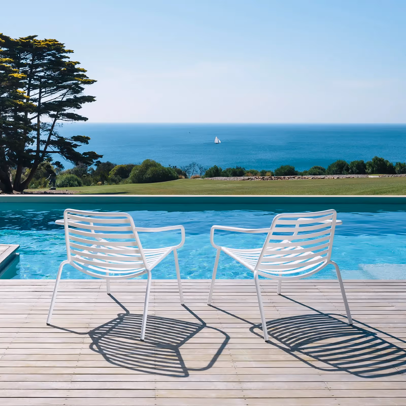 Prop up an elbow and lose yourself in a good book and a glass of wine, on the BOMBALA that embraces you. Perfect for long, dreaming lunches, its slender arms wrap naturally around you to support relaxed seating.